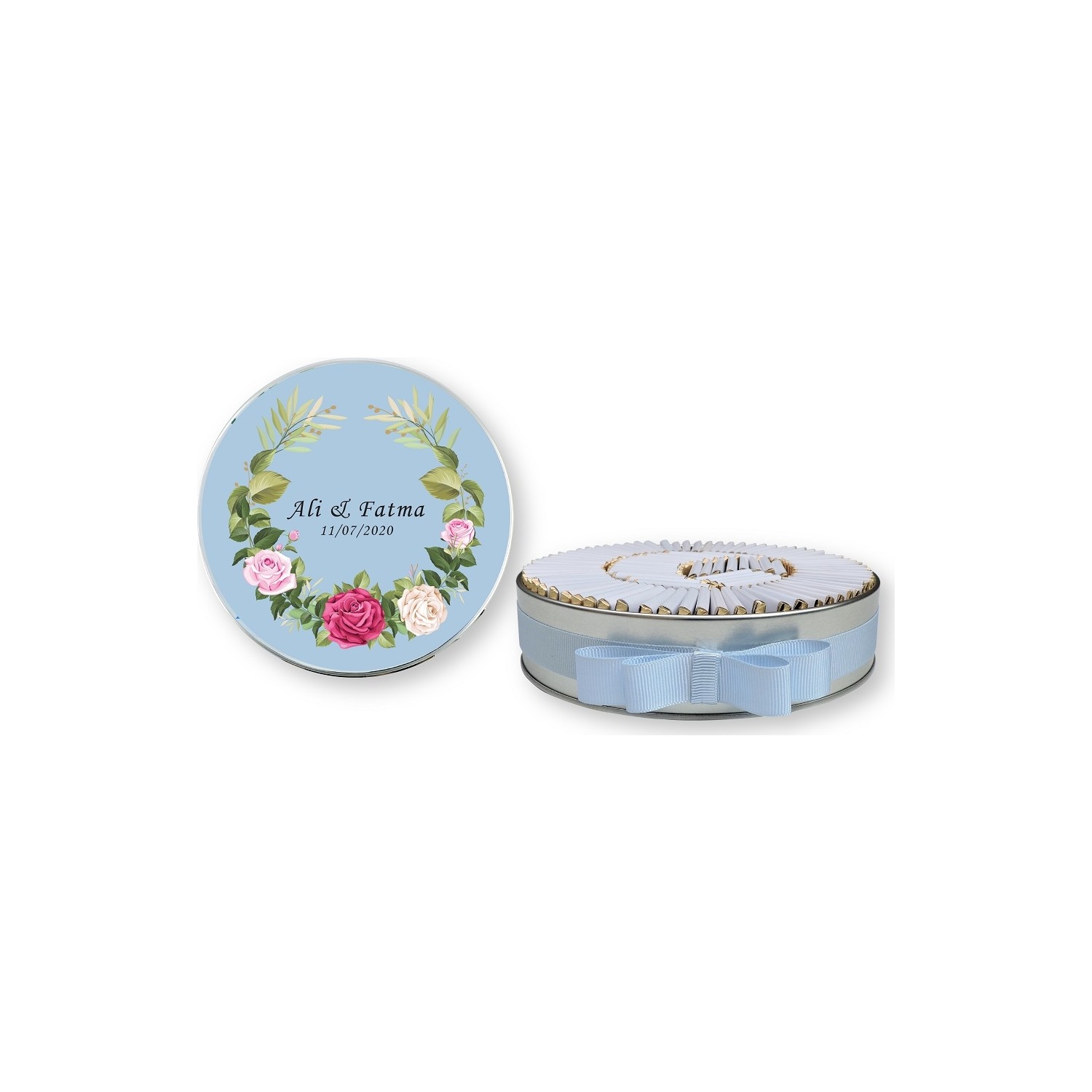 Artu Bebek Çikolatası Isimli. - Kutunun çapı 18 cm dir ve içerisinde 50 adet sargılı madlen çikolata vardır. BASKILI MADLEN ÇİKOLATA EVİM.